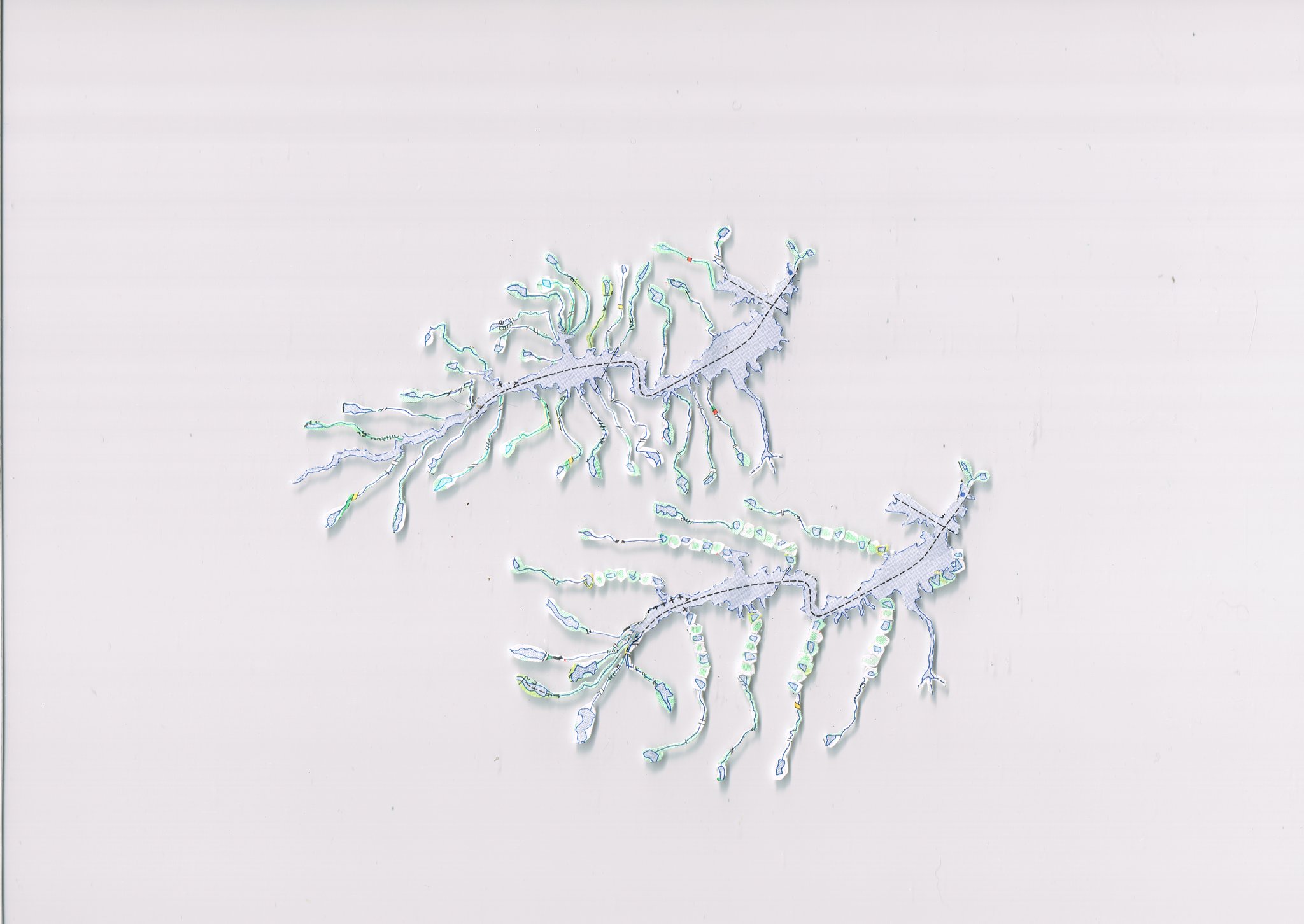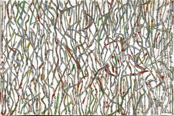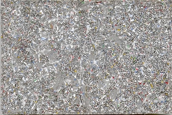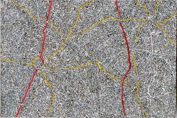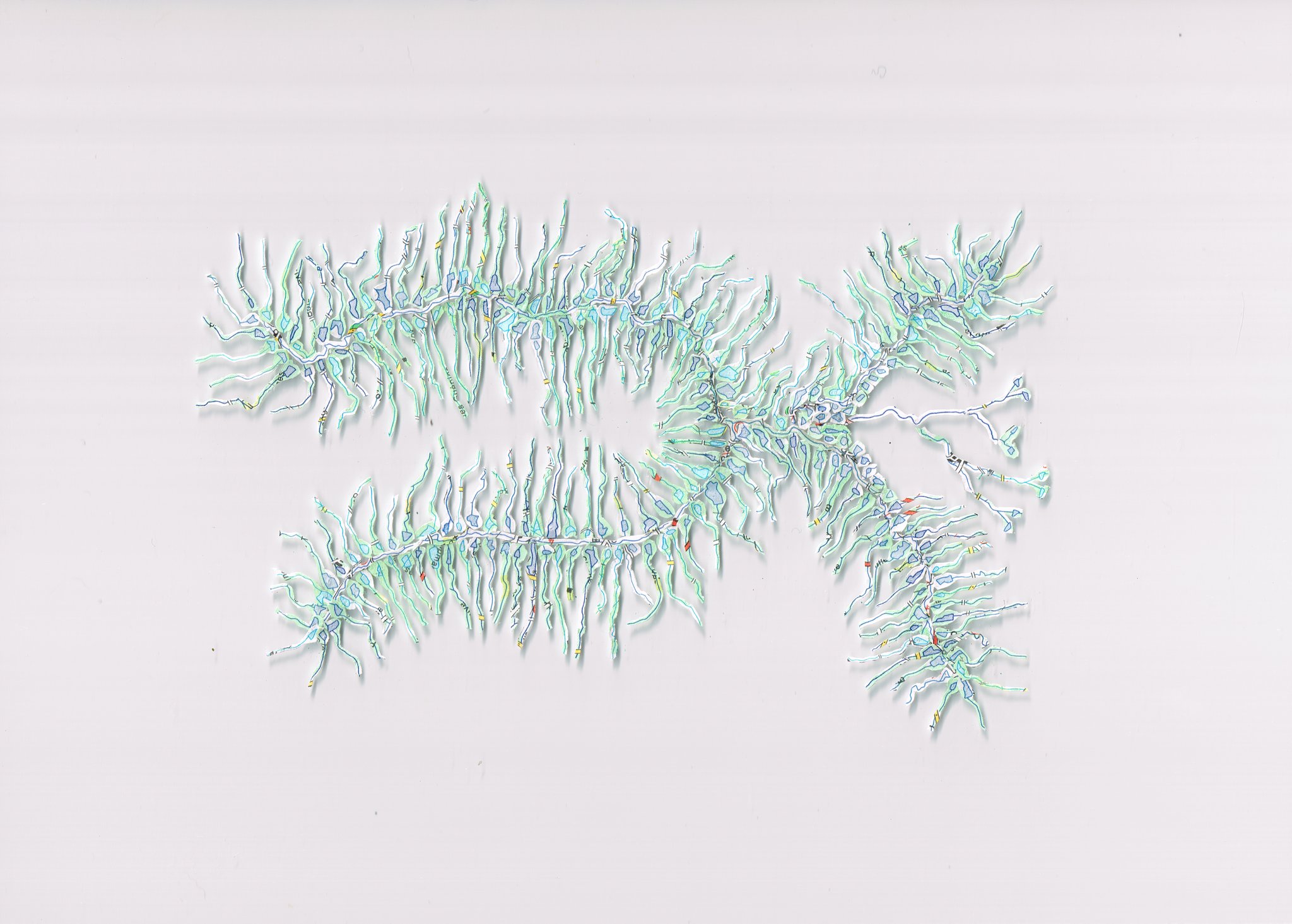 Cartes routières, atlas géographiques, mappemondes, territoires inépuisables de rêveries voyageuses. Les voici découpés en mille morceaux minuscules, puis réassemblés par collage pour composer une nouvelle carte, un cartographisme. Une miniature qui change le regard sur le monde et la carte, et devient à son tour le support de voyages rêveurs…